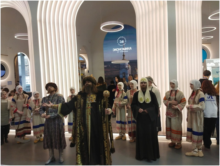 Особенно впечатлило посетителей выставки костюмированное представление с участием Ивана Грозного, митрополита Филиппа и бояр. Ведь известный музей-заповедник Александровская Слобода, вошедший в российскую историю как знаменитая опричная столица Ивана Грозного, находится именно в г. Александрове.