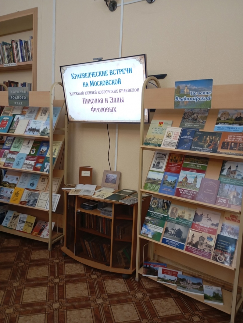 В Ковровской центральной районной библиотеке 7 декабря открылась подготовленная совместно с Историко-краеведческий музеем Ковровского района выставка книг краеведов Николая и Эллы Фроловых,