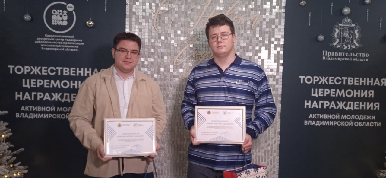 24 декабря во Дворце детского и юношеского творчества во Владимире состоялась торжественная церемония награждения активной молодёжи Владимирской области – представителей школ, колледжей и вузов региона. Организатором мероприятия выступило Министерство образования и молодёжной политики региона при поддержке регионального Ресурсного центра развития добровольчества и молодёжных инициатив.