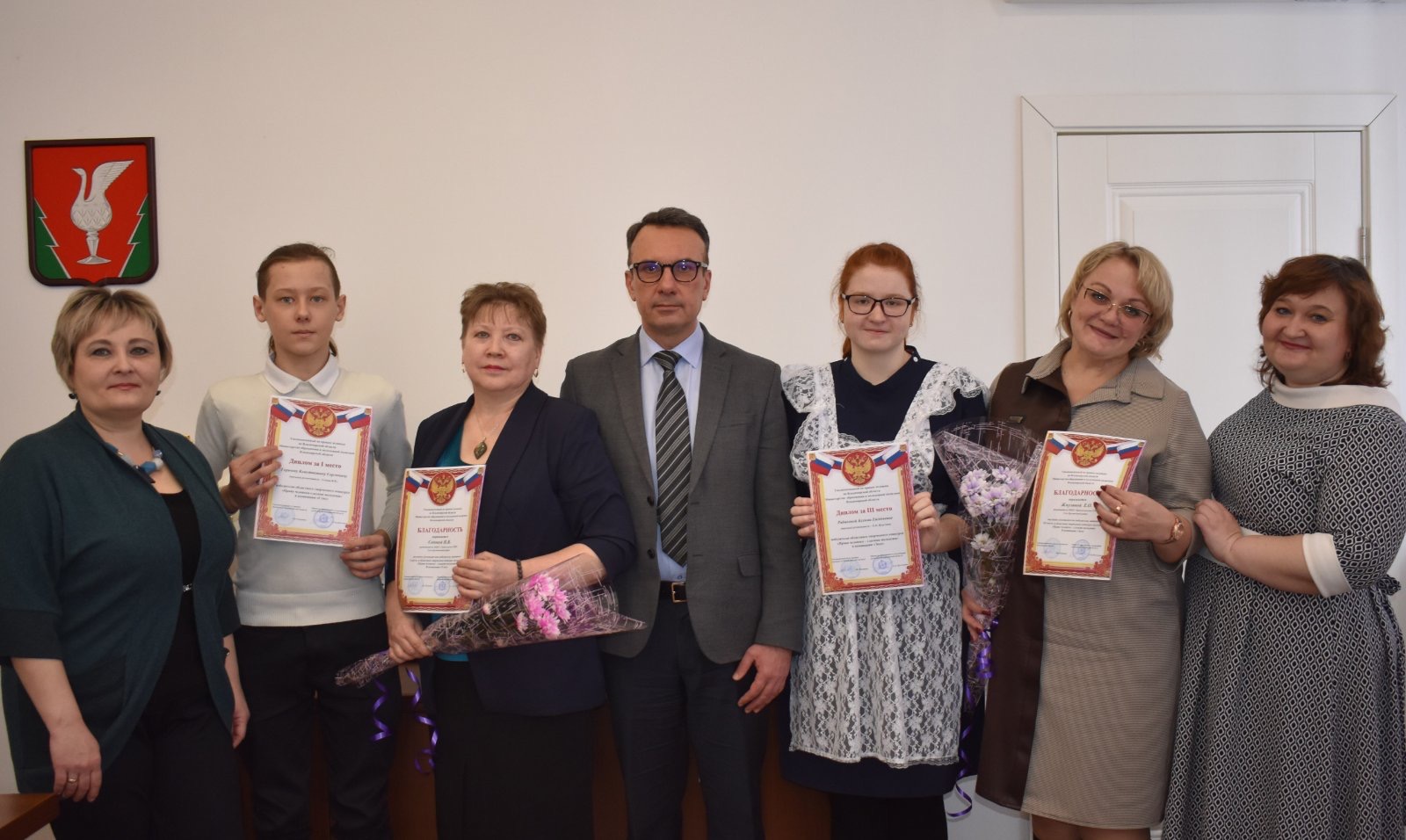 Глава администрации района Алексей Кабенкин вручилюным победителям дипломы, а их педагогам благодарности за подписью Уполномоченного по правам человека во Владимирской области и руководителя областного Министерства образования. «Очень здорово, что вы – современная молодежь – проявляете неравнодушие к такой серьезной теме, как права человека. Я горжусь, что такие замечательные ребята проживают и учатся в Гусь-Хрустальном районе. Поздравляю вас и желаю новых побед!» — обратился Алексей Викторович к школьникам.