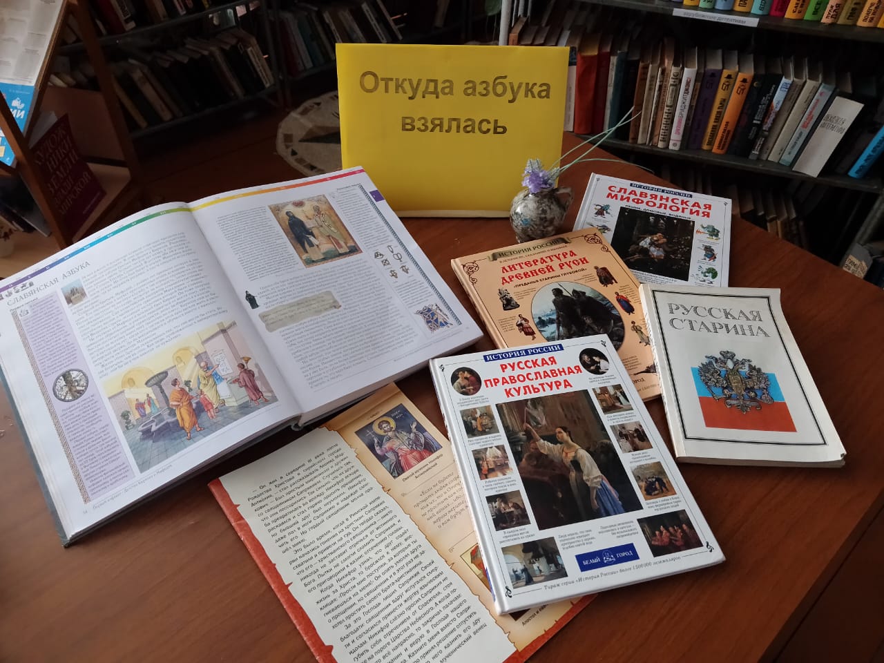 19 мая в Мошокской сельской библиотеке состоялось историческое путешествие «Кружева славянской речи» для учащихся Мошокской общеобразовательной школы. Ребята узнали, как велика заслуга братьев Кирилла и Мефодия в истории просвещения и поднятия общей культуры славянских народов, о возникновении письменности, о долгом пути к букве, о рукописных книгах. Ребята с увлечением участвовали в викторине «Сначала АЗ да БУКИ, а потом науки». Познакомились с настольной книжной выставкой «Откуда азбука взялась»