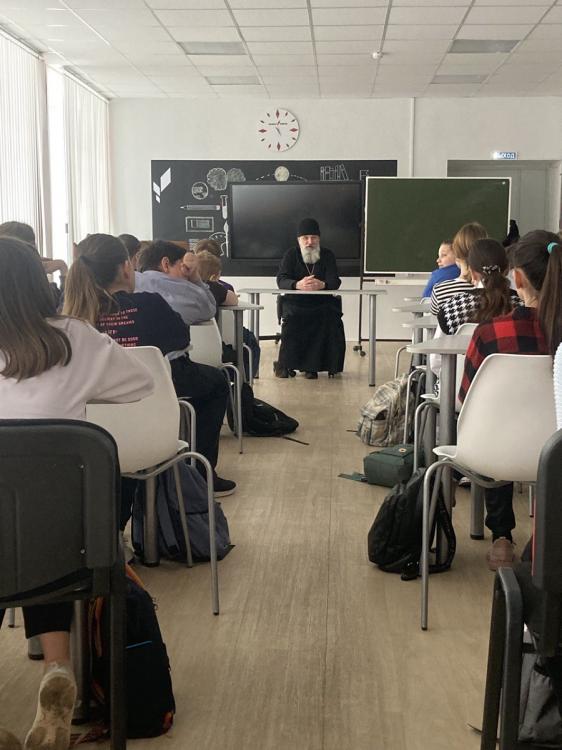 Во время занятия священник рассказал ребятам о базовых понятиях Православного вероучения, о смысле предстоящего Великого поста и ответил на их многочисленных вопросы. В частности ребята спрашивали, в чем отличие веры в Бога у христиан и у мусульман. Также прозвучал вопрос об отношении Православной Церкви к деятельности секты «сатанистов».