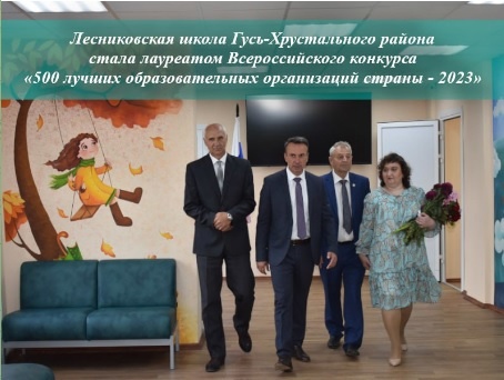 В рамках работы съезда прошла церемония награждения лауреатов Всероссийского конкурса «500 лучших образовательных организаций страны - 2023». Ежегодно в конкурсе участвуют лучшие российские образовательные организации, продемонстрировавшие передовой педагогический опыт и высокие показатели качества образования. Лесниковская школа Гусь-Хрустального района стала победителем в номинации «Лучшая сельская школа России — 2023». Школе была вручена медаль «500 лучших образовательных организаций страны - 2023» и диплом. Поздравляем директора Овечкина Михаила Ильича и педагогический коллектив школы с заслуженной наградой и желаем дальнейших успехов!
