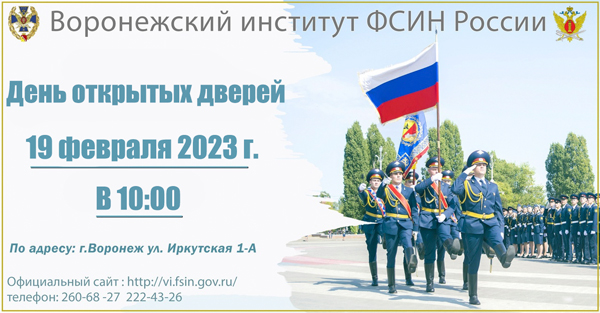 Мероприятие состоится 19 февраля в 10.00. по адресу: г. Воронеж, ул. Иркутская, 1. Гостей ждет встреча с руководством Воронежского института ФСИН России и экскурсия по учебному заведению.
