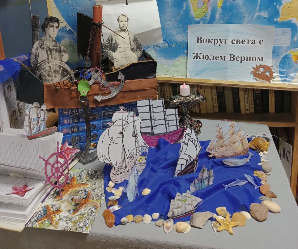 В Бараковской сельской библиотеке оформлена книжно-иллюстративная выставка «Вокруг света с Жюль Верном», посвященная 195-летию со дня рождения французского писателя и географа.