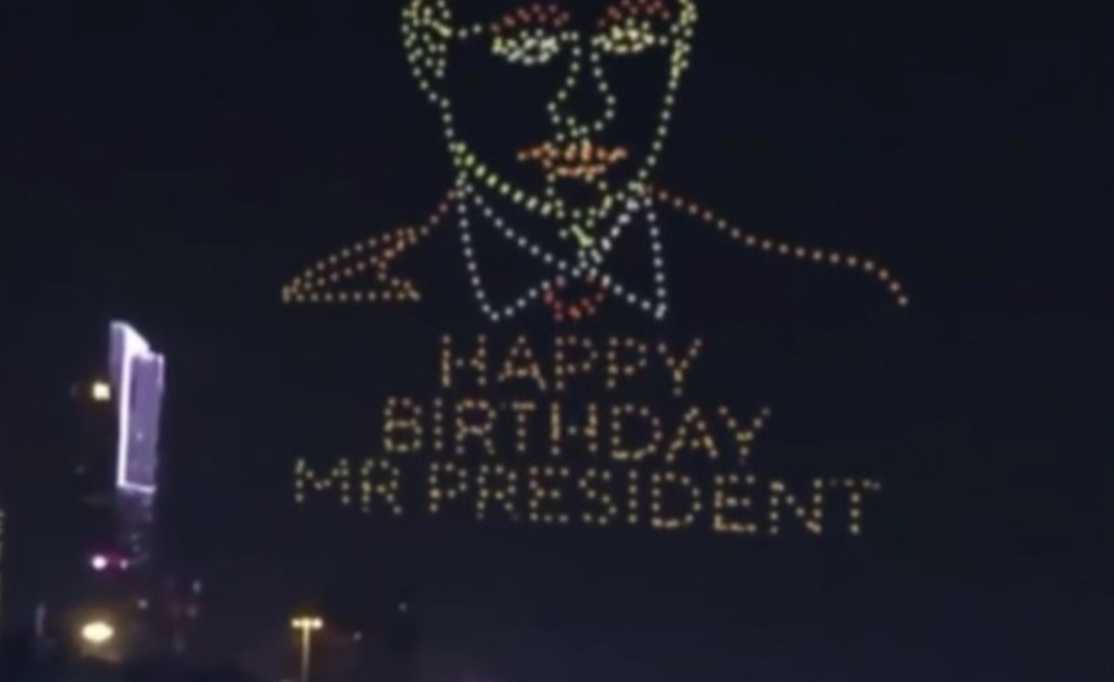 В субботу, 7 октября, президент Путин отметил свой 71-й день рождения. Китай приготовил оригинальное поздравление для своего союзника, создав в воздушном пространстве удивительное зрелище. Жители Гуанчжоу стали свидетелями уникальной картиной, когда ночным небом заполнили сотни беспилотных аппаратов, образовав портрет лидера России. Надпись “Happy Birthday, Mr President” завершила этот воздушный поздравительный акт.