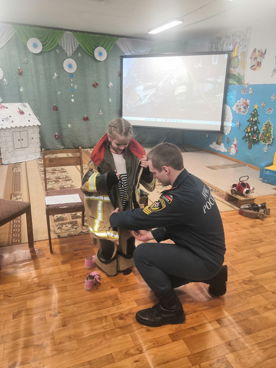 В данном детском саду находится всего 15 малышей разного возраста, и для каждого ребёнка сотрудники МЧС нашли свой подход и разъяснили главные правила безопасности.