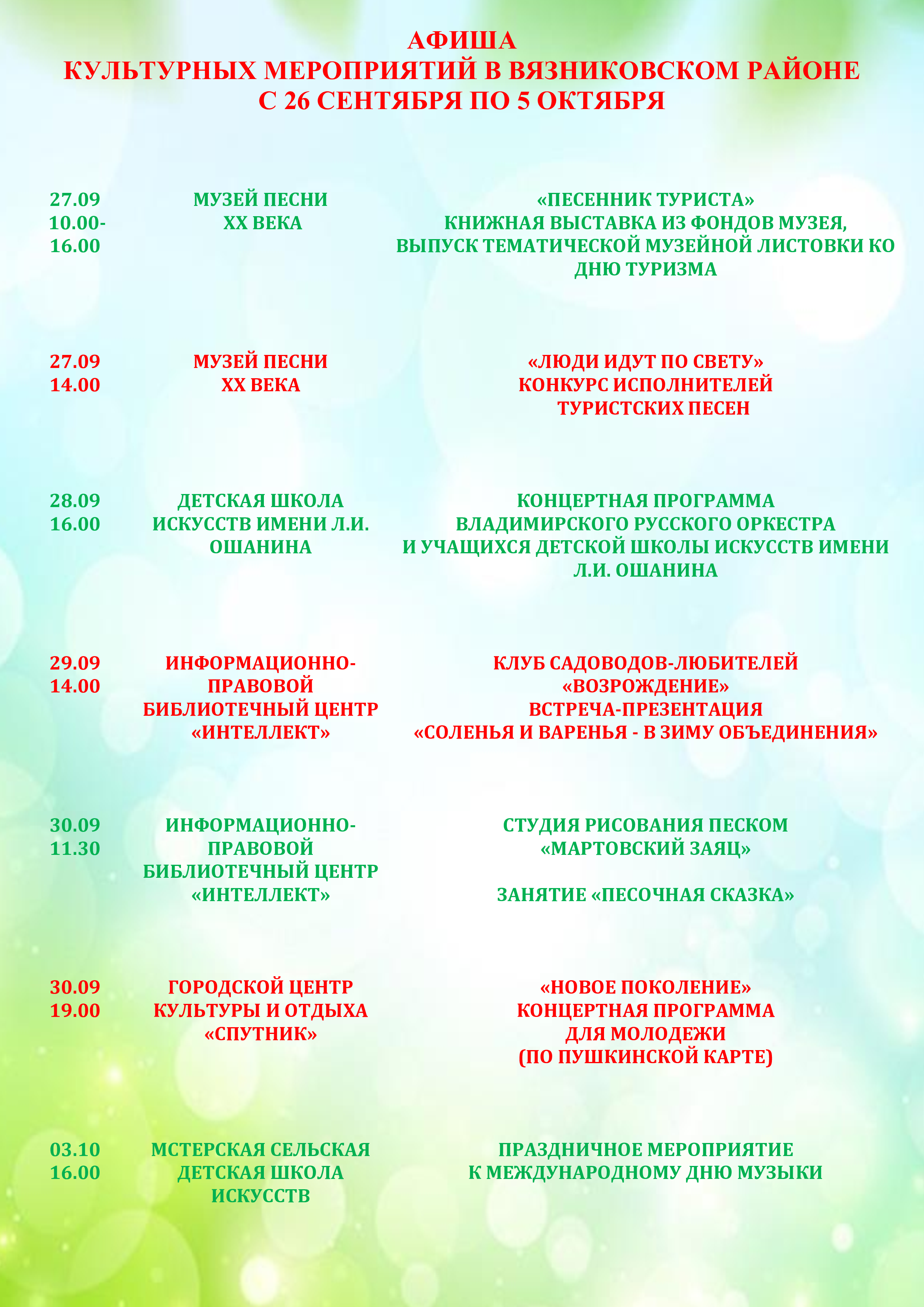 Публикуем традиционную афишу культурных мероприятий с 25 сентября по 5 октября.