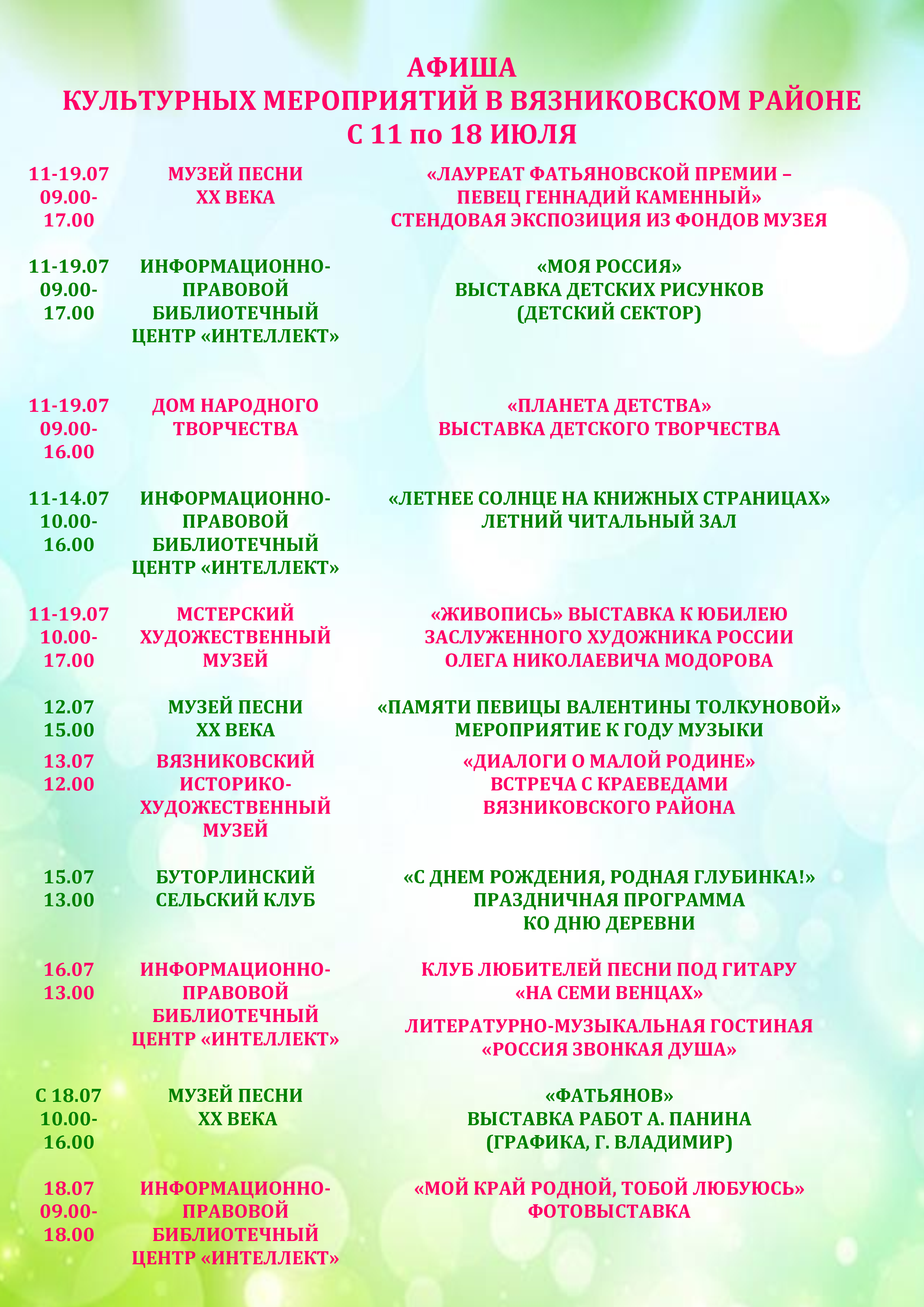 Афиша мероприятий с 11 по 19 июля