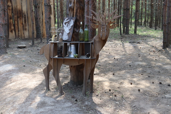 Вместе с Анастасией они прогулялись по лесу, посетили прекрасные зоны для посиделок, покормили оленей и ворона. Во время прогулки хозяйка этого сказочного местечка рассказала о своих планах, задумках, новых проектах. Здесь уютно и семьям с детьми, и творческим людям, и любителям уединения, а так же тем, кто любит всевозможные фестивали, слеты. На территории Артколхоза по субботам проходят музыкальные посиделки. Для любителей творчества организуются мастер-классы. Недавно прошел фестиваль любителей автотуризма. Есть отличное местечко для музыкальных фестивалей и концертов со сценой, площадкой для зрителей в окружении деревьев под уютным киржачским небом. На территории этого прекрасного леса уютно себя чувствуют косули и семейство козочек, зайцы давно обосновались в норках, выходя днем погулять на лужайки. Детям будет приятно пообщаться с кроликами, которые живут в просторных клетках Николай Лавданский – академический скульптор, закончивший Строгановку. Его творчество не может оставить равнодушным. Он работает с разными материалами. Прогуливаясь по уютному лесу можно встретить творения его рук.