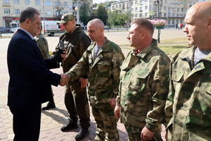 Контрактников напутствовал и военнослужащий Александр, который после реабилитации вновь вернётся в строй: «Вы надели форму, там возьмёте в руки оружие и станете друг другу братьями. Братья бывают кровными, а вы станете пороховыми братьями. Берегите своих товарищей, и они будут беречь вас. Удачи вам, ребята, всё получится!»