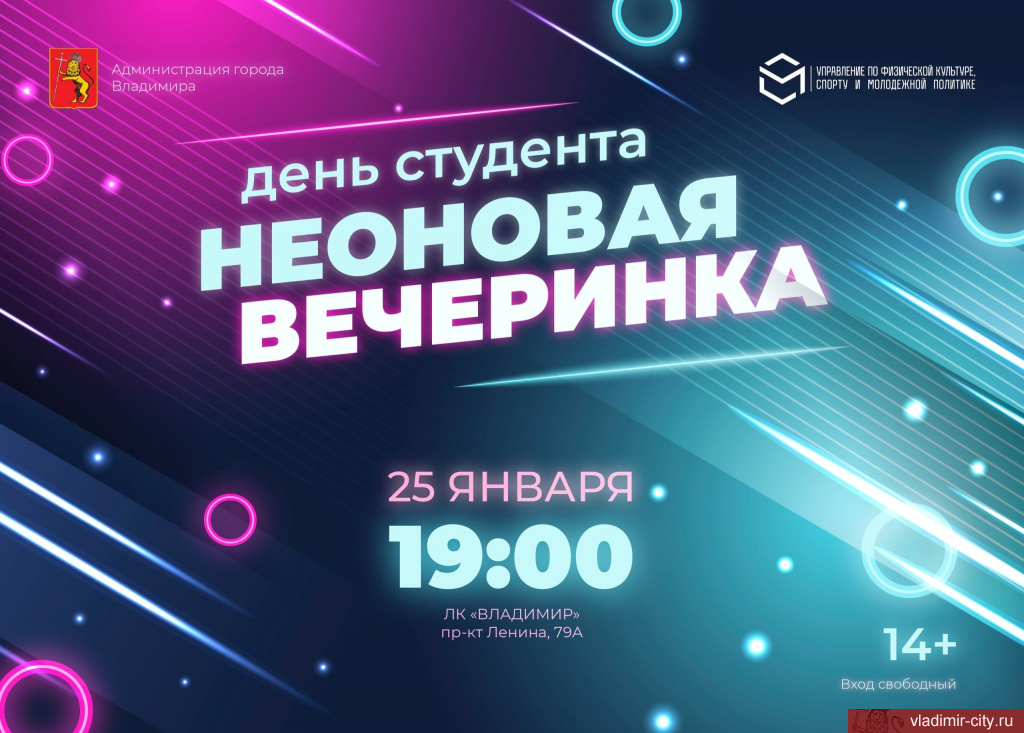 25 января в честь Дня российского студенчества в ледовом комплексе «Владимир» (пр-т Ленина, 79А) пройдет «Неоновая вечеринка» на коньках.