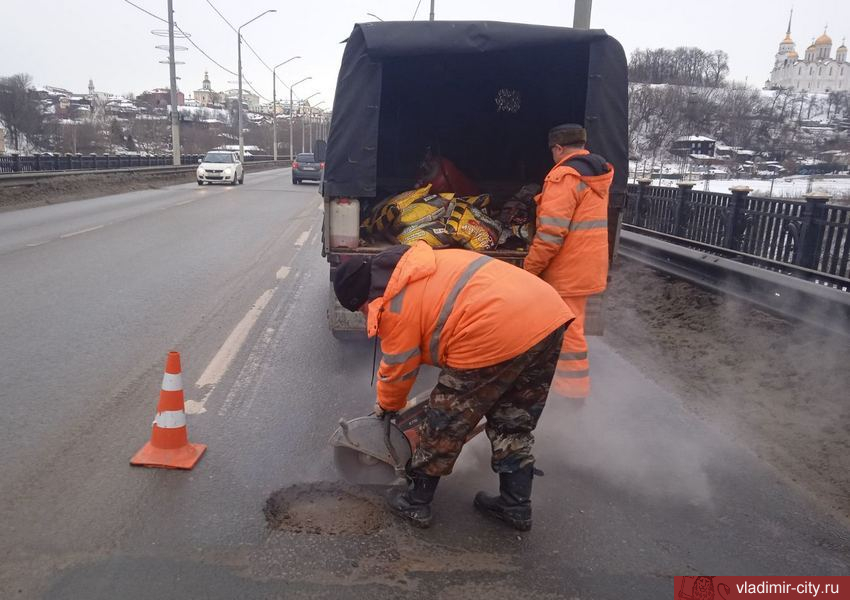 Специалисты муниципального «Центра управления городскими дорогами» («ЦУГД») сегодня проводят работы по локальному ремонту дорожных повреждений литой асфальтобетонной смесью на автомобильном мосту через Клязьму.