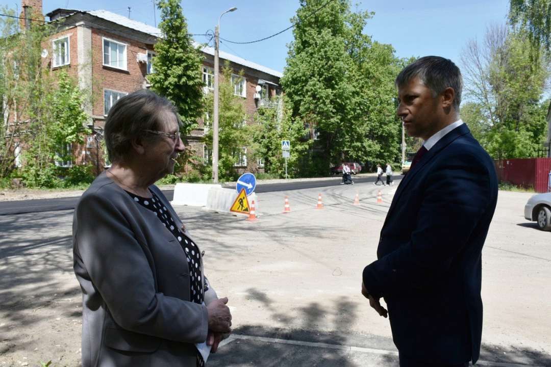 Глава города Алексей Соколов проинспектировал ход работ по укладке асфальта на улице Чапаева