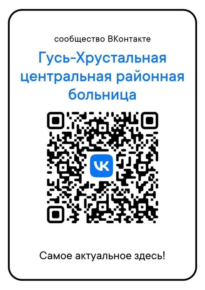 Гусь-Хрустальная центральная районная больница приглашает жителей Гусь-Хрустального города и района в свой официальный госпаблик в социальной сети «ВКонтакте».