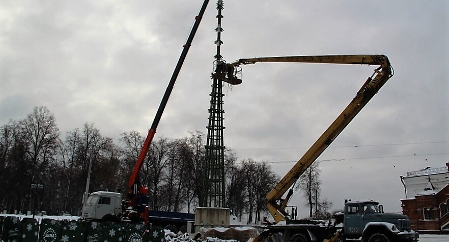 Соборную площадь по традиции украсит ель «Домашняя». Монтаж новогоднего дерева идет полным ходом. Игрушки сложены в ящиках и ждут своего появления. Уже через мгновение они окажутся на ели.