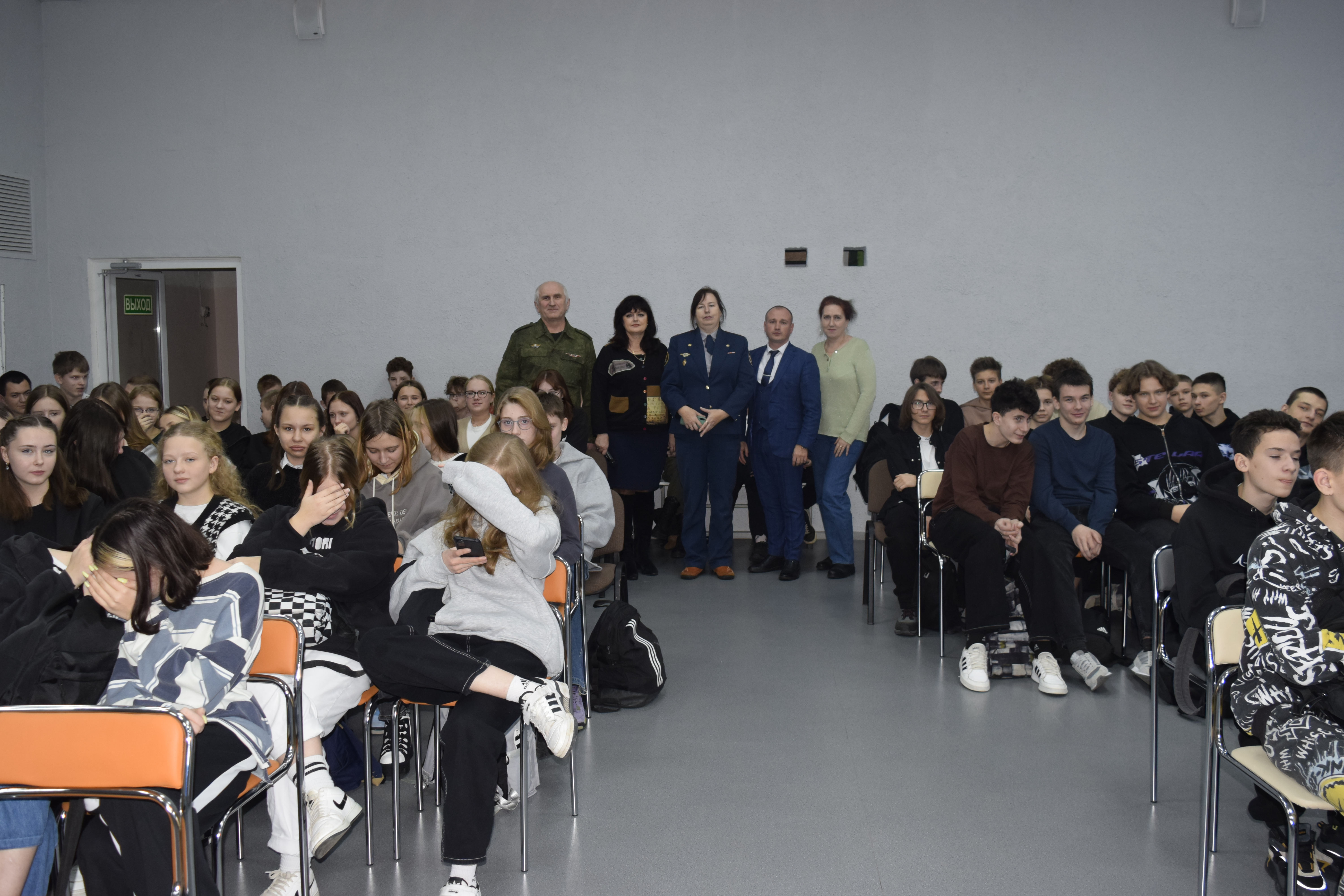 Перед школьниками выступили начальник отдела обеспечения деятельности комиссии по делам несовершеннолетних и защите их прав И.Ю. Прохорова, заместитель начальника управления культуры, спорта, туризма и молодёжной политики администрации района Н.О. Смирнова , начальник уголовно-исполнительной инспекции В.Н. Борисова, помощник прокурора А.В. Прохоров, председатель Совета ветеранов войны, труда и правоохранительных органов Сергей Бочковский.