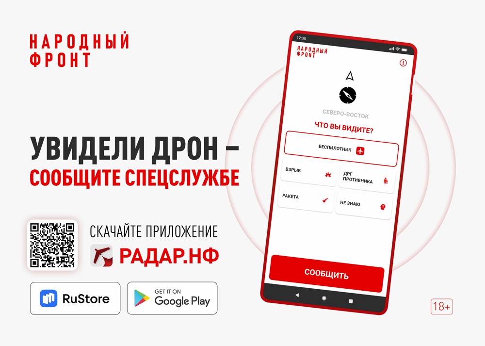 В России запустили мобильное приложение «Радар.НФ», через которое можно сообщить напрямую силовикам о подозрительной активности: пролёте беспилотника, ракеты, взрыве или деятельности диверсионно-разведывательной группы.