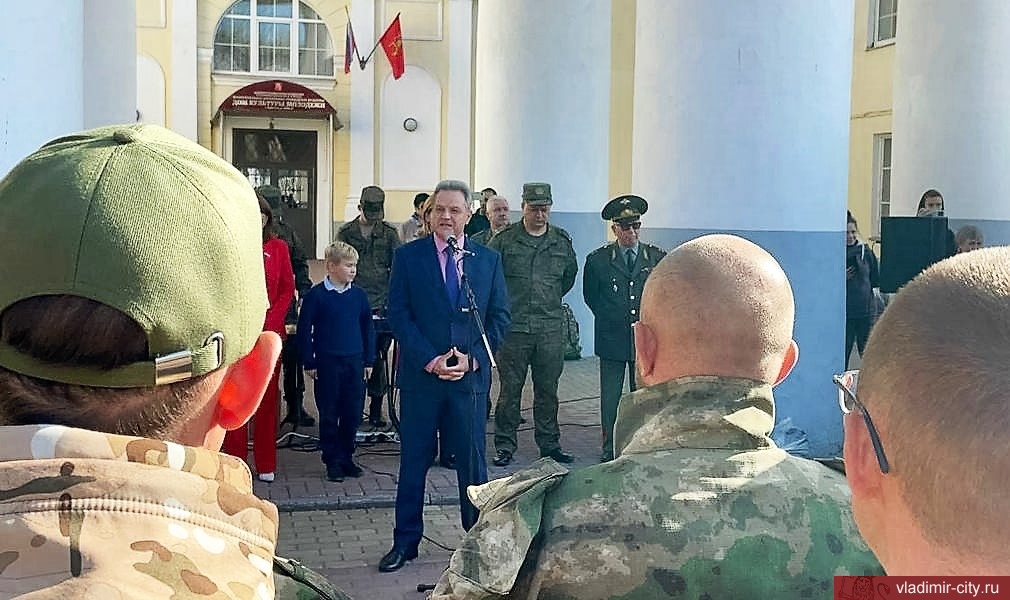 Воинов напутствовали ветераны, общественники, представители областной и городской администрации, священнослужители. Министр региональной безопасности Владимирской области Сергей Полузин напомнил мысль легендарного российского полководца Александра Суворова о том, что доброе имя каждого человека зависит от его трудов на благо Отечества. Сегодня время защищать Отечество, - напутствовал бойцов Сергей Полузин.