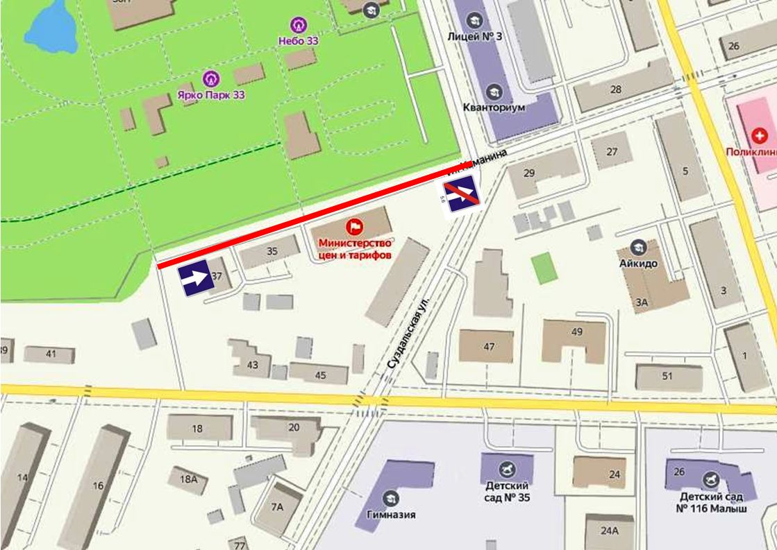 В целях совершенствования дорожного движения на участке ул.Каманина в районе домов № 31, № 37 вводится одностороннее движение.