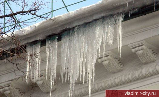 В зимнее время, особенно во время перепадов температур, на крышах зданий скапливаются массы снега и образуются сосульки.