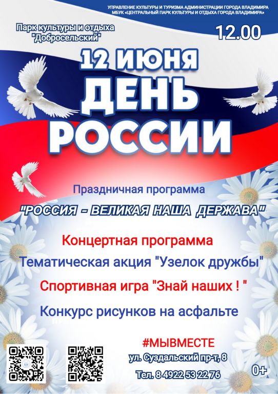 12 июня в Российской Федерации отмечается один из самых главных государственных праздников – День России. В этот день парк культуры и отдыха «Добросельский» подготовил для жителей и гостей города праздничную программу «Россия - великая наша держава».