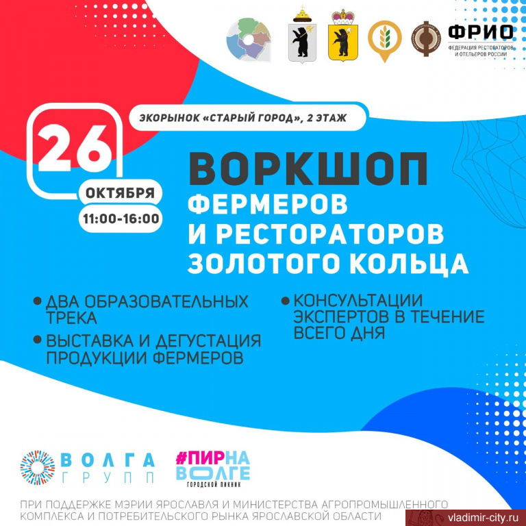 Союз городов Золотого кольца приглашает владимирских рестораторов и фермеров на воркшоп, который пройдет в Ярославле 26 октября .