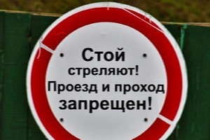 Границы запретной зоны полигона на полевых дорогах, обочинах, полосах отчуждения ж/д обозначены знаками предупреждения белого цвета с красной каймой с надписями: «СТОЙ. СТРЕЛЯЮТ! ПРОЕЗД И ПРОХОД ЗАПРЕЩЁН!».