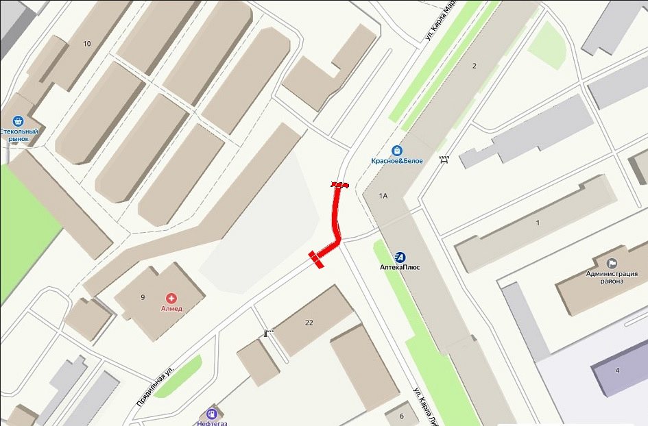 Подъезд к медицинскому центру «Алмед», АЗС будет сохранён по ул. Прядильной. Подъезды к стекольному рынку будут сохранены по ул. Октябрьской, ул. Карла Маркса.