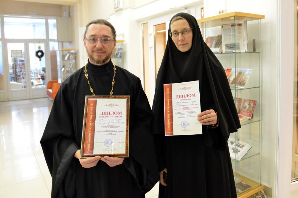 Также от Владимирской митрополии награды ежегодного книжного конкурса получили: клирик Александровской епархии иерей Роман Клинков за книгу «Покровский уезд. История возникновения, становления и развития» (диплом II степени в номинации «История Владимирского края. Индивидуальный автор») и клирик Муромской епархии священник Алексий Алексеев за очерки «Подвижники веры и благочестия Вязниковской земли XIX-XX веков» (диплом номинанта в номинации «Литература по истории, религии и церкви во Владимирском крае»).