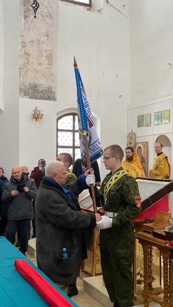 По окончании церемонии прошел чин освящения реконструированного знамени 62-го пехотного Суздальского Генералиссимуса князя Суворова полка. Он был совершен по всем правилам и канонам Русской Православной Церкви и Вооруженных Сил РФ настоятелем храма Василия Великого в Кистыше иереем Иоанном Власовым. А.В. Черкасов вручил знамя знаменной кадетской группе Суздальской Православной гимназии. В заключительном слове Александр Владимирович поздравил всех участников прошедшего события, отметил его историческую значимость, призвал кадетов – суворовцев быть достойными имени великого полководца. Впервые за много лет прозвучало в храме троекратное «УРА!!!».