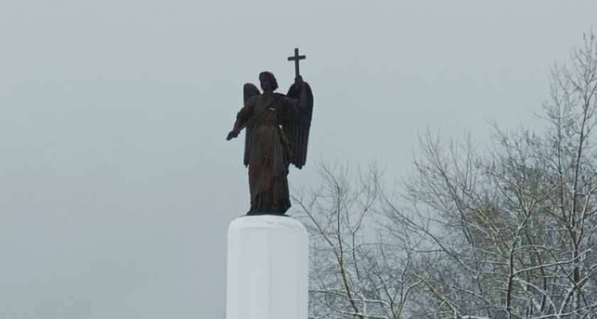 - По подобию, как на столпе в Санкт-Петербурге Ангел осеняет город на Неве, так же теперь Гусь-Хрустальный будут осенять крыла предводителя воинств небесных.
