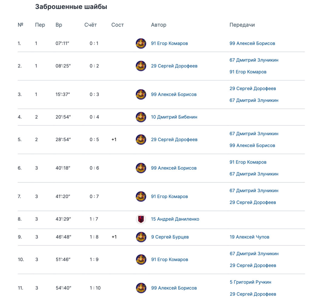 Матч Ночной хоккейной лиги дивизиона 18+ завершился победой «Олимпа» — 10:1