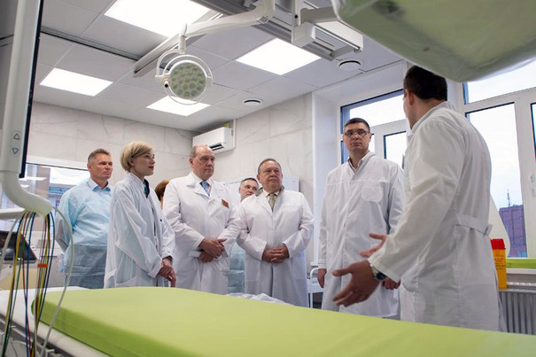 Вместе с другими чиновниками губернатор осмотрел операционный блок, реанимационное отделение и кабинет МРТ-диагностики.