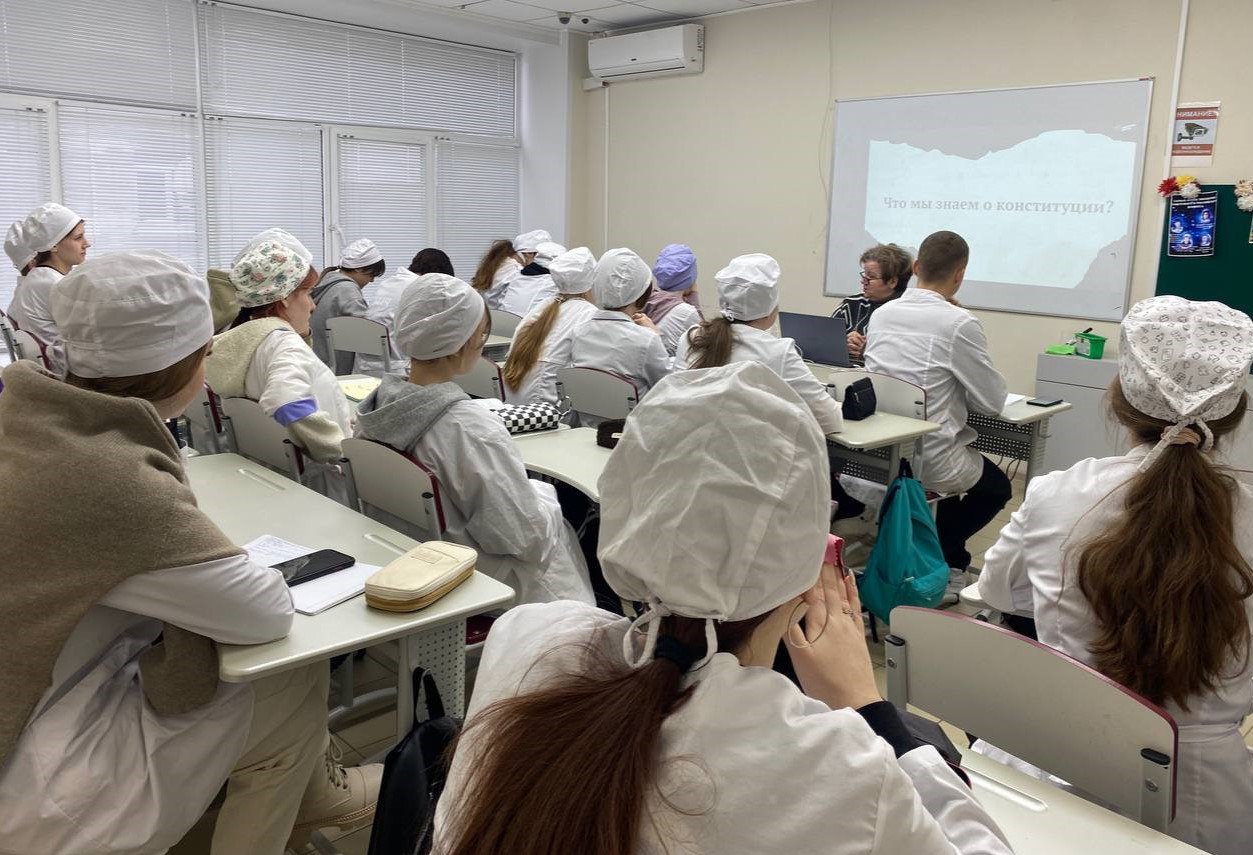 В рамках празднования Дня Конституции, 12 декабря 2023 года во Владимирском базовом медицинском колледже среди студентов проведена интеллектуальная игра «Что мы знаем о Конституции?». Игра направлена на ознакомление обучающихся с законами страны, а также с законами, специфичными для нашего региона проживания. В рамках информационного урока студенты просмотрели видеофильм «Конституция Российской Федерации».