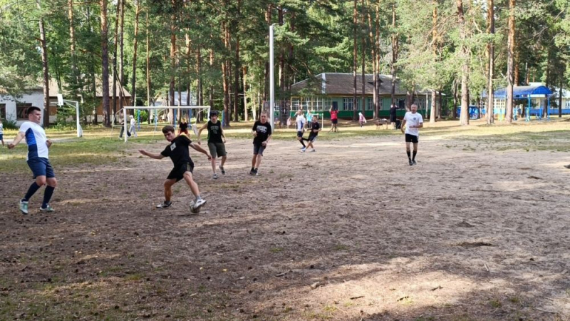 Сотрудники полиции и воспитанники лагеря объединились для дружеской игры.