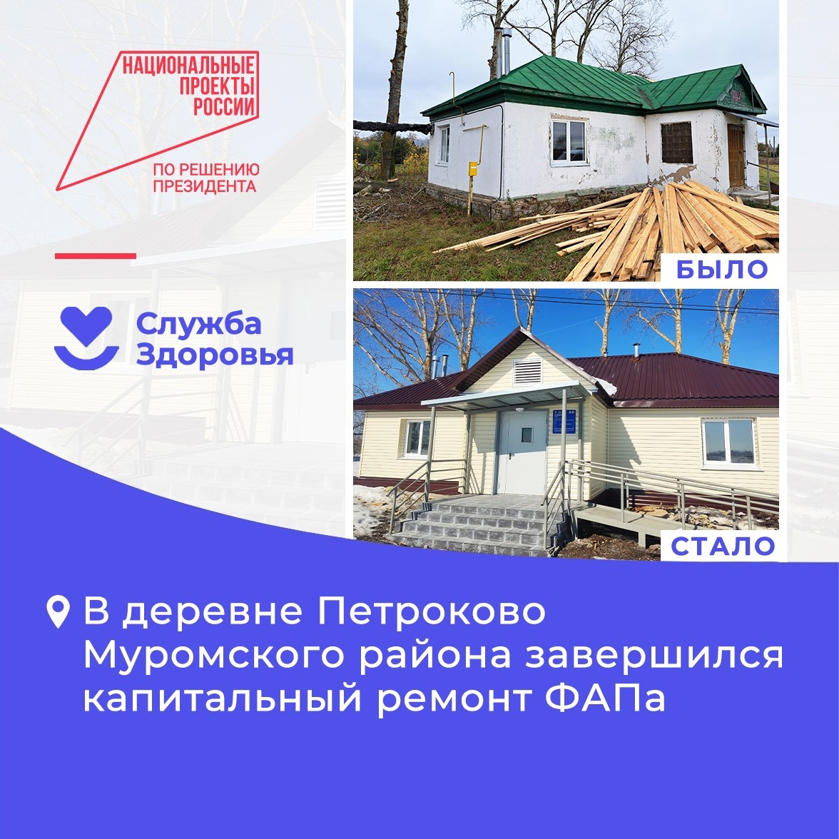 Фото: Минздрав Владимирской области В деревне Петроково Муромского района завершился капитальный ремонт фельдшерско-акушерского пункта.