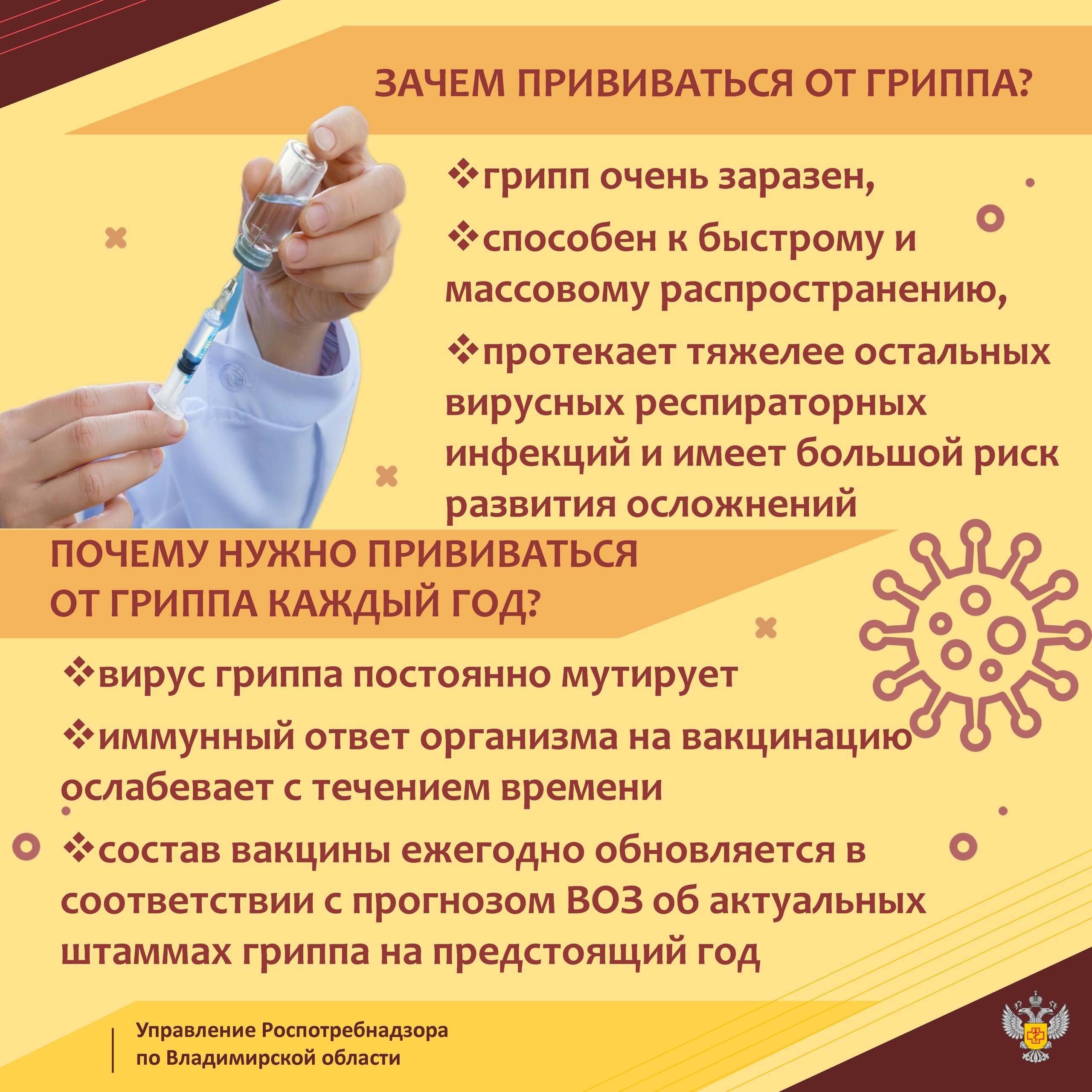 Управление Роспотребнадзора напоминает: самым эффективным методом профилактики гриппа признана вакцинация.