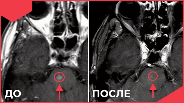 Несмотря на крайне опасный для осложнений участок головного мозга, отвечающий за проведение нервных импульсов от спинного мозга к головному, за контроль движений тела и восприятие положения в пространстве, специалистами онкодиспансера г. Владимира было принято решение провести стереотаксическую лучевую терапию на область метастаза. При контрольных МРТ через 4 и 6 месяцев метастаз не определяется, новых метастазов тоже нет. Спустя 13 месяцев пациент живет активной жизнью и продолжает лечение рака легкого.