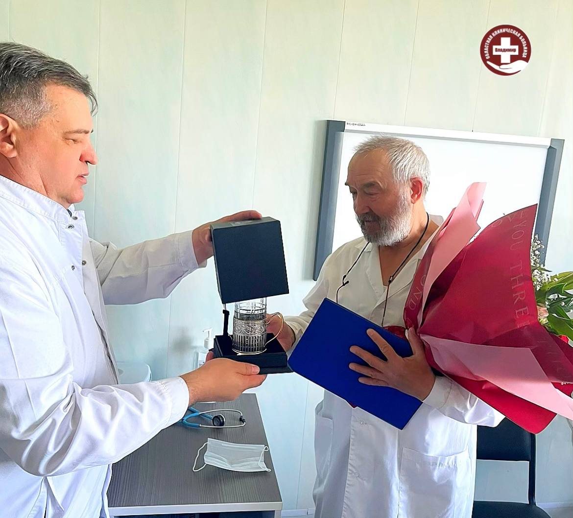 Вчера заслуженный врач РФ, единственный в области фониатр Чернов Евгений Александрович, отметил прекрасный 70- летний юбилей. Сегодня на рабочем месте его поздравили коллеги.