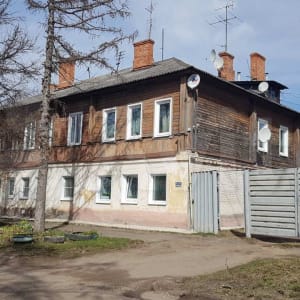 Дом - низ кирпичный, верх деревянный. Огороженный двор. Удобный подъезд к дому с двух сторон.