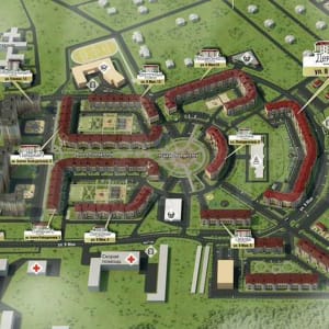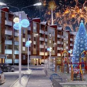 Закрытый от проезжей части двор, современная детская площадка с резиновым покрытием и центральная площадь микрорайона для прогулок всей семьей всего в 100 метрах от дома. В центре дома предусмотрена арка для того, чтобы будущим жителям не приходилось объезжать дом, чтобы попасть на ул. 9 мая, к таунхаусам или же на прогулку в лес.