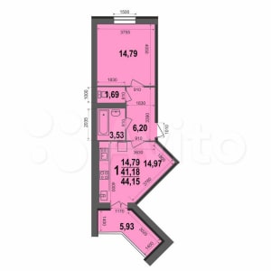 Площадь 44,15 кв.м.