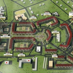Закрытый от проезжей части двор, современная детская площадка с резиновым покрытием и центральная площадь микрорайона для прогулок всей семьей всего в 100 метрах от дома. В центре дома предусмотрена арка для того, чтобы будущим жителям не приходилось объезжать дом, чтобы попасть на ул. 9 мая, к таунхаусам или же на прогулку в лес.