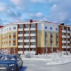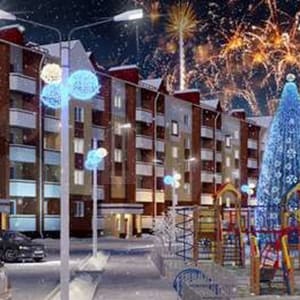 В центре дома предусмотрена арка для того, чтобы будущим жителям не приходилось объезжать дом, чтобы попасть на ул. 9 мая, к таунхаусам или же на прогулку в лес.