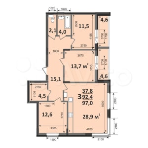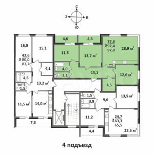 3-комнатная квартира на среднем этаже 97 кв.м с БО-О-ОЛЬШОЙ кухней 28,9 квадратов в новом ЖК "Грани" от строительной компании Континент.