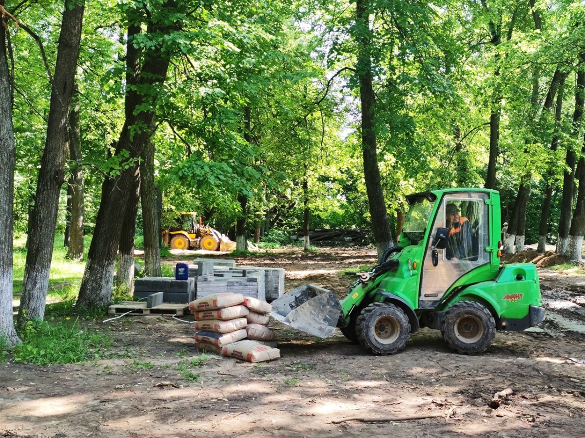 Только вот прямо сейчас здесь довольно шумно. В эти дни подрядная организация выполняет работы по благоустройству парка. Ремонтники формируют подушку для пешеходных дорожек, выкладывают их брусчаткой. Рядом курсирует мини-погрузчик со стройматериалами. Также в работах задействован трактор и другая специализированная техника. Всё для того, чтобы скоро Ярцевский парк обрёл вторую жизнь.