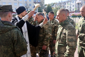 Как и всегда, на площади возле Дома культуры молодёжи во Владимире бойцов провожали творческие коллективы Ободряющие слова произнёс священнослужитель Владимирской епархии отец Алексий6 «Ратное дело всегда было непростым, и есть много примеров героизма среди наших великих предков. А значит, есть на кого равняться и откуда черпать духовные силы».