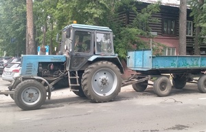 Механизированный покос травы осуществляется на ул. Маяковского. Задействован трактор.