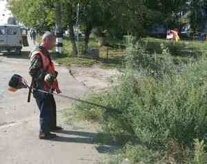 Также осуществляется механизированный окос травы на улице Еловая с использованием одного трактора. Ручной окос производится на проспекте Ленина бригадой рабочих.